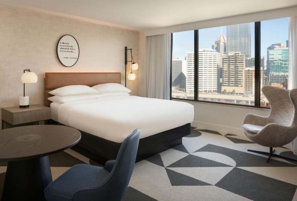 The hotel has a total of 124 rooms, each of which is equipped with floor-to-ceiling windows. Some high-floor rooms overlook the magnificent view of the Monongahela River and the city skyline.